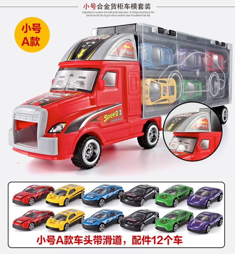 משאית מכוניות צעצוע לילדים משאית עם 12 מכוניות משחק