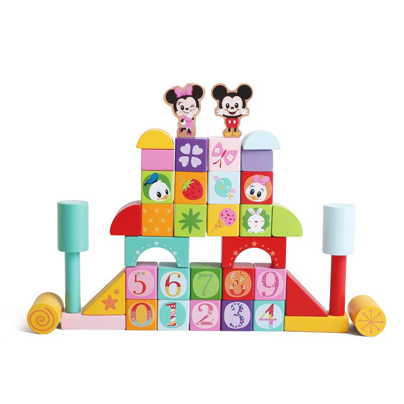 אבני בניין מעץ לפעוטות דיסני מיקי מאוס קוביות משחק מעץ לילדים