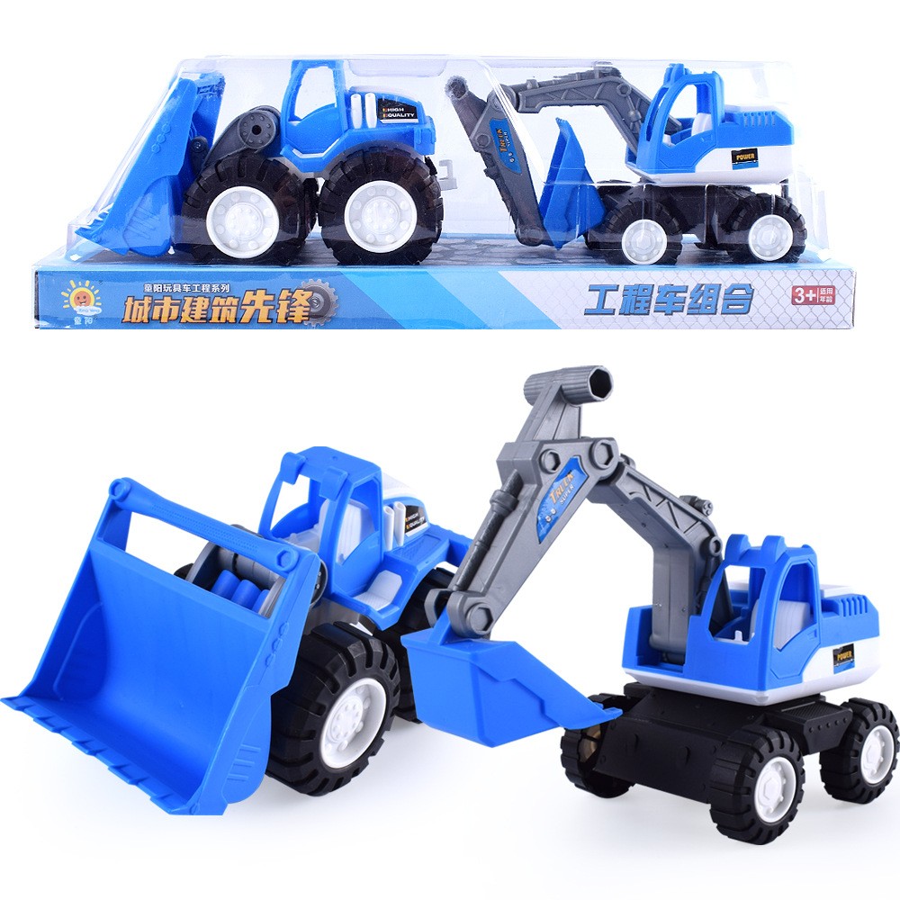 טרקטור ומחפרון צעצוע לילדים שני כלי רכב באריזת צעצוע לילדים