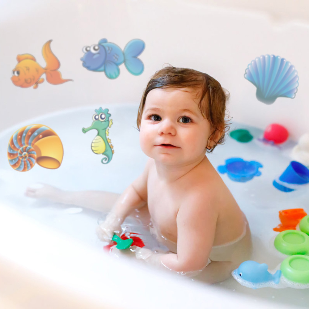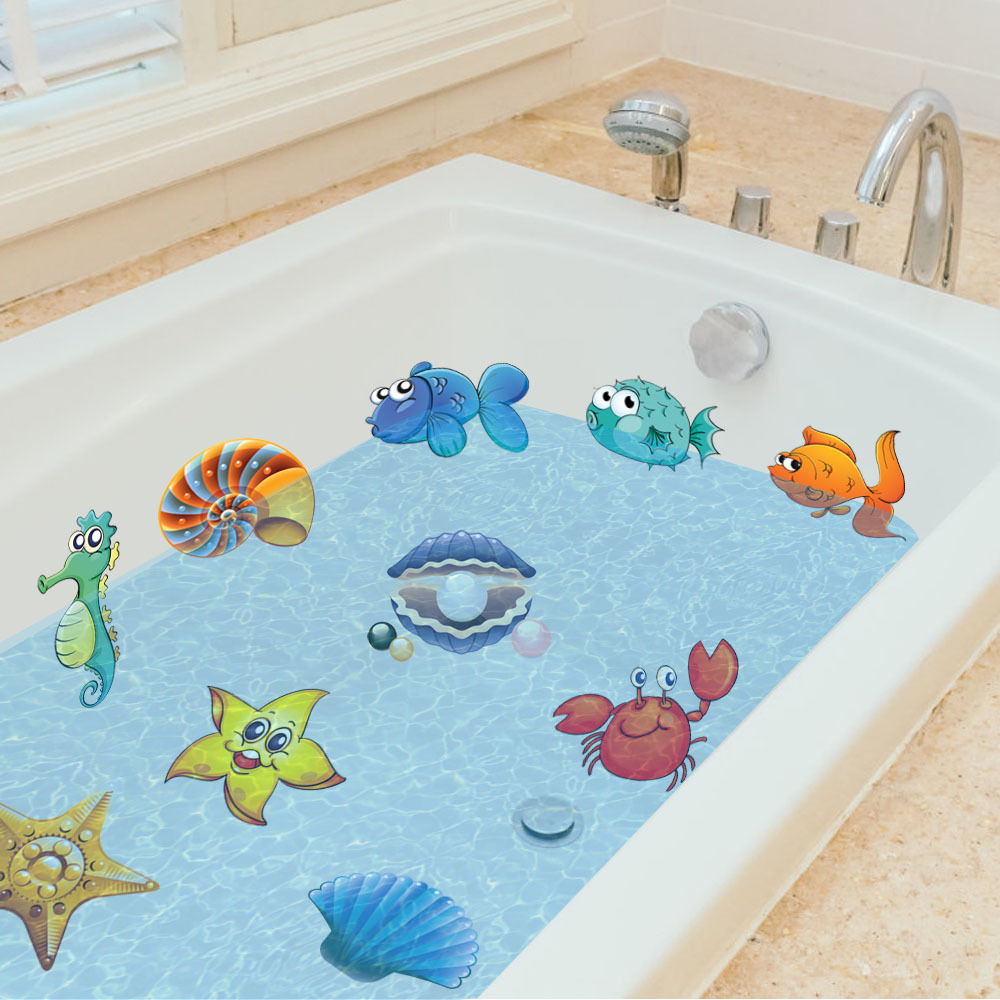 מדבקות קיר לאמבטיה של חיות ימיות מצוירות מדבקות אמבטיה עמידות למים