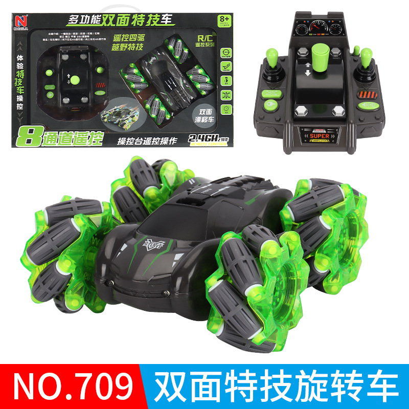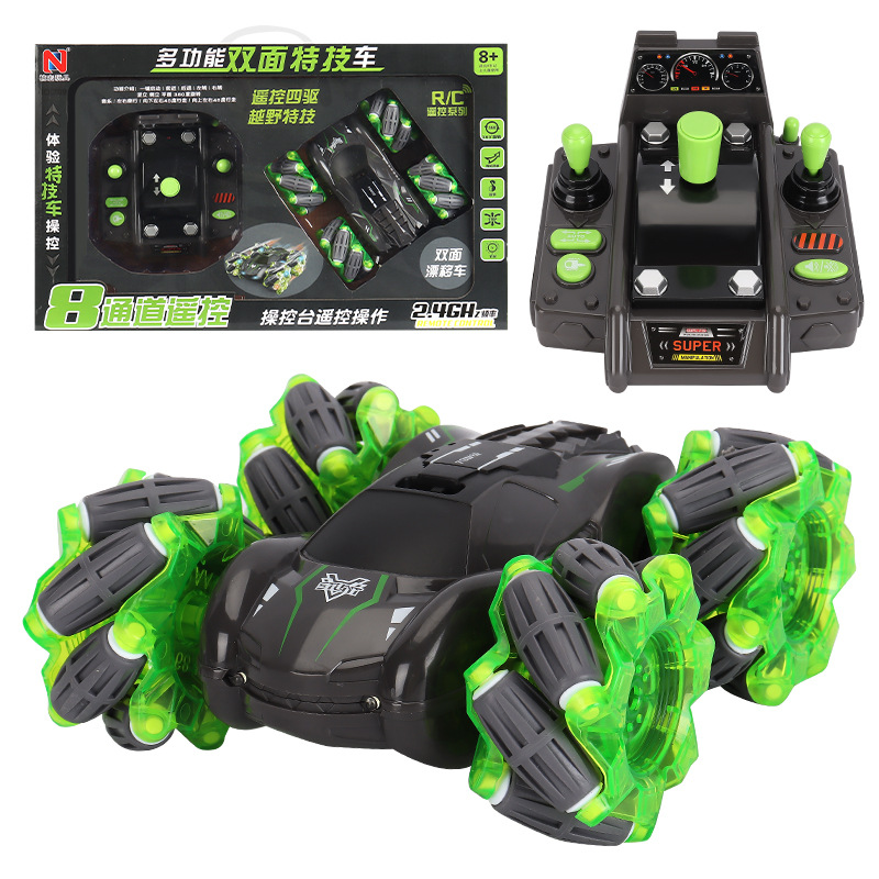 מכונית על שלט מכונית מרוץ פעלולים דו צדדית עם אורות מסתובבת 360 מעלות