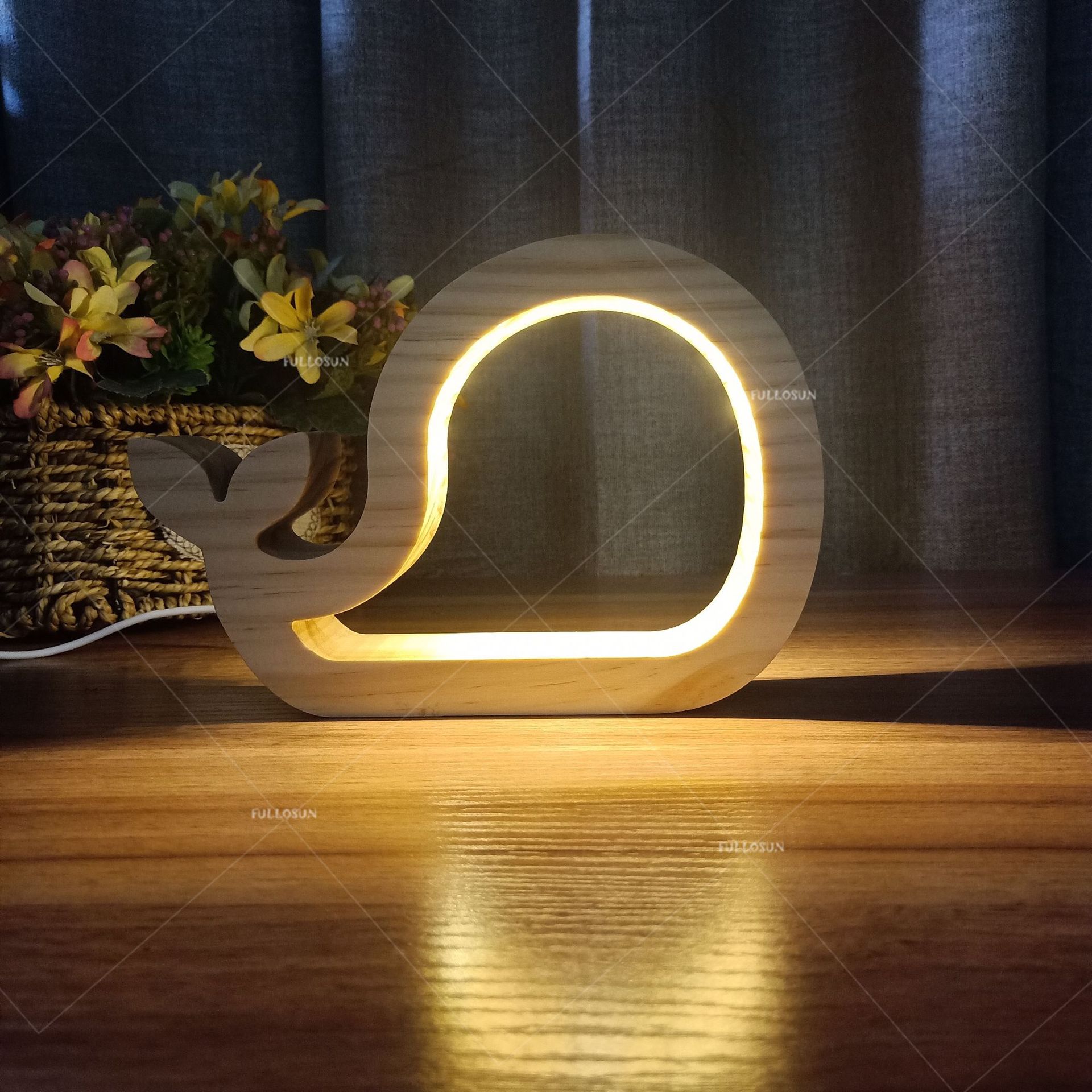 מנורת לילה מעץ לילדים בצורת לוויתן