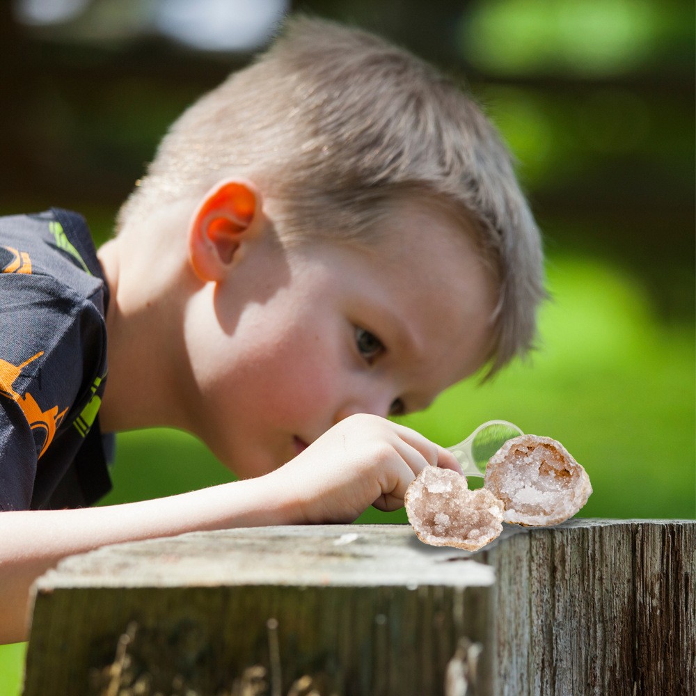 הערכה כוללת משקפי מגן זכוכית מגדלת ומאובנים