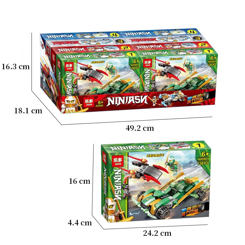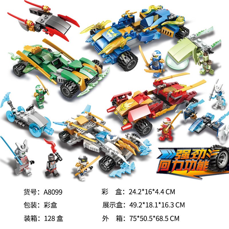 ערכת בניה לגו רכבי נינג'ה לילדים לגו לבנית 4 רכבי נינג'ה