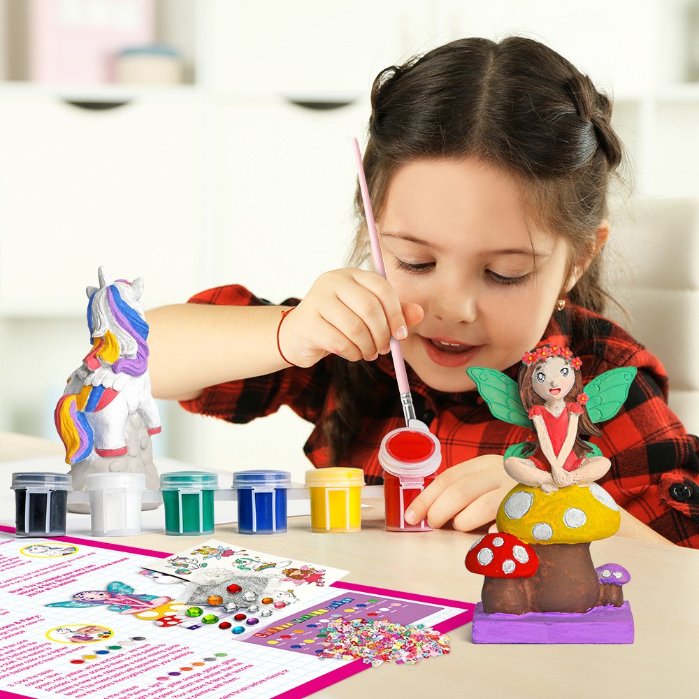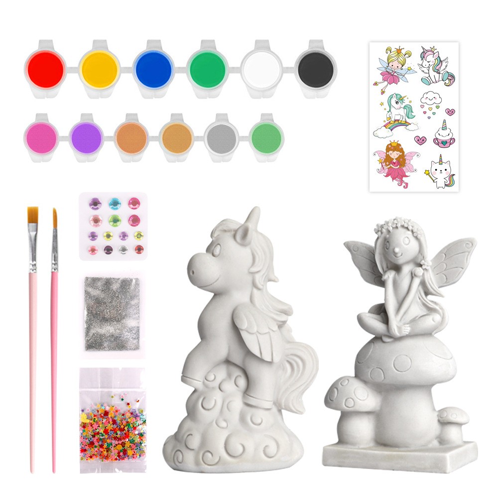 ערכת יצירה לילדים גבס חד קרן ופיה DIY בובות גבס לצביעה