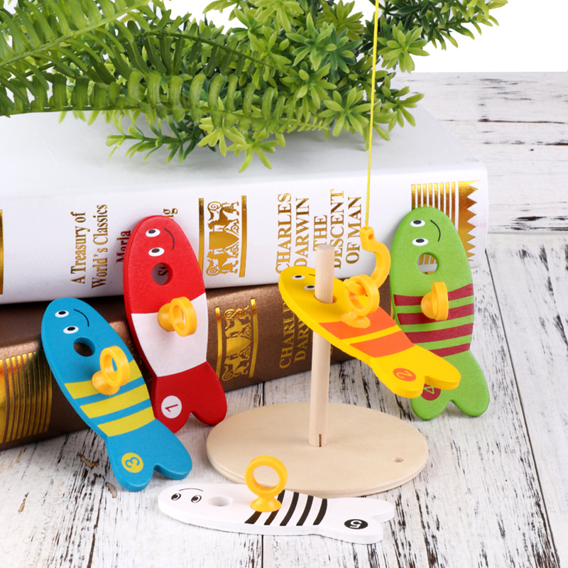 צעצועי עץ לילדים דיג חכה דגים מעץ