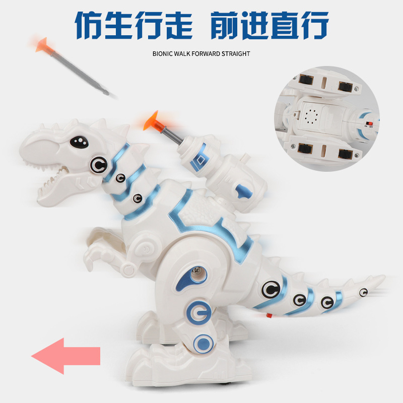 רובוט דינוזאור צעצוע חשמלי לילדים הולך מדליק אורות ויורה חיצים